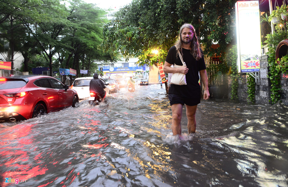 Sau trận mưa lớn kéo dài khiến nhiều tuyến đường TP.HCM ngập úng sâu. Nhiều người nước ngoài phải lội nước để về nhà. Dưới đây là những hình ảnh được ghi lại sau trận mưa lớn.