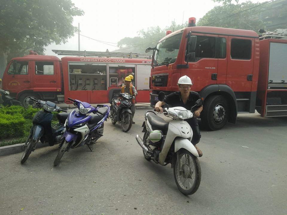 Ngay sau đó đã có hai xe cứu hỏa được huy động đến hiện trường để dập lửa. Lực lương công an đang vất vả điều tiết giao thông. Đến 14h55, ngọn lửa cơ bản đã được khống chế. Tuy nhiên khói đen vẫn bay mù mịt xung quanh.