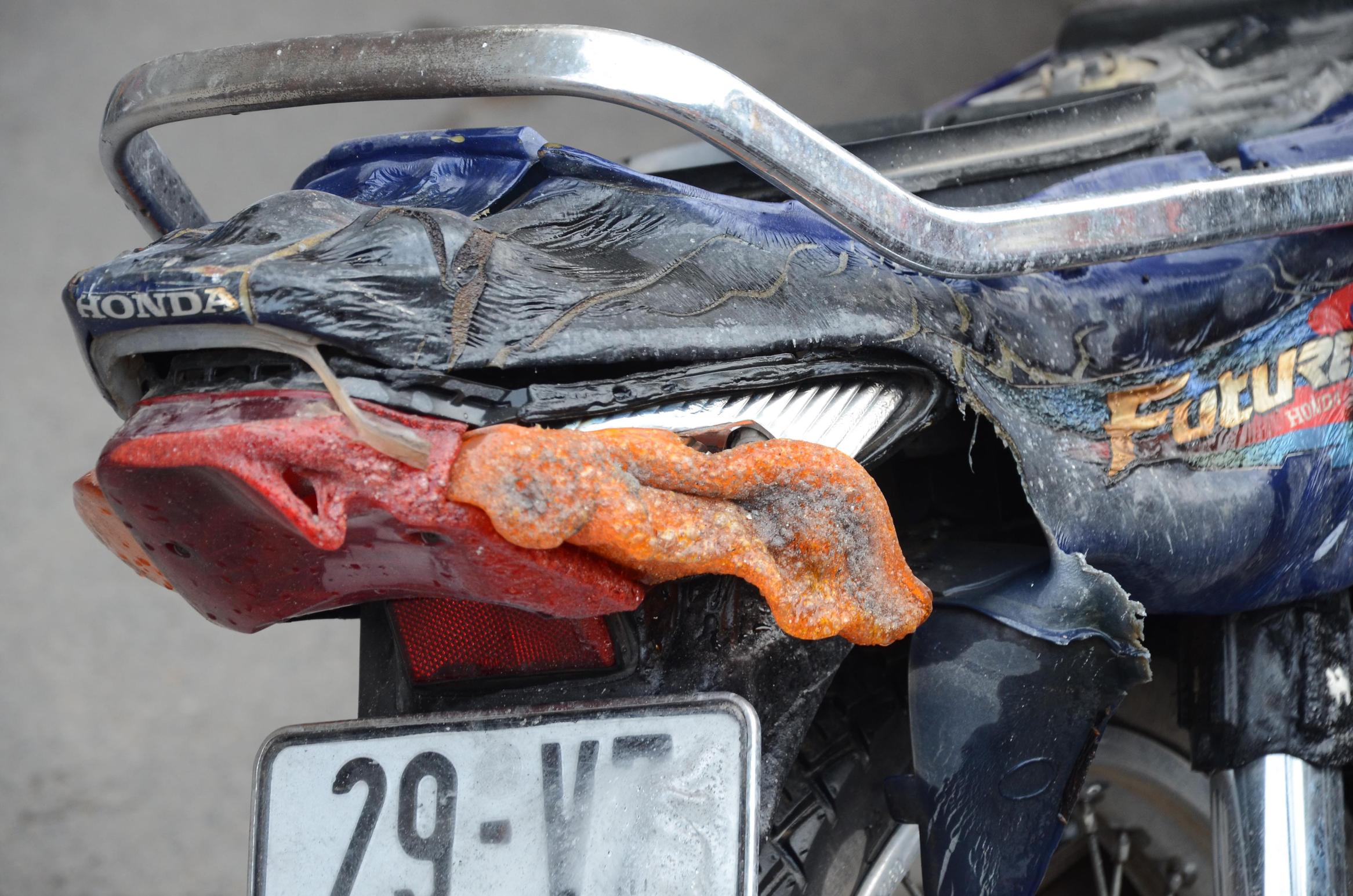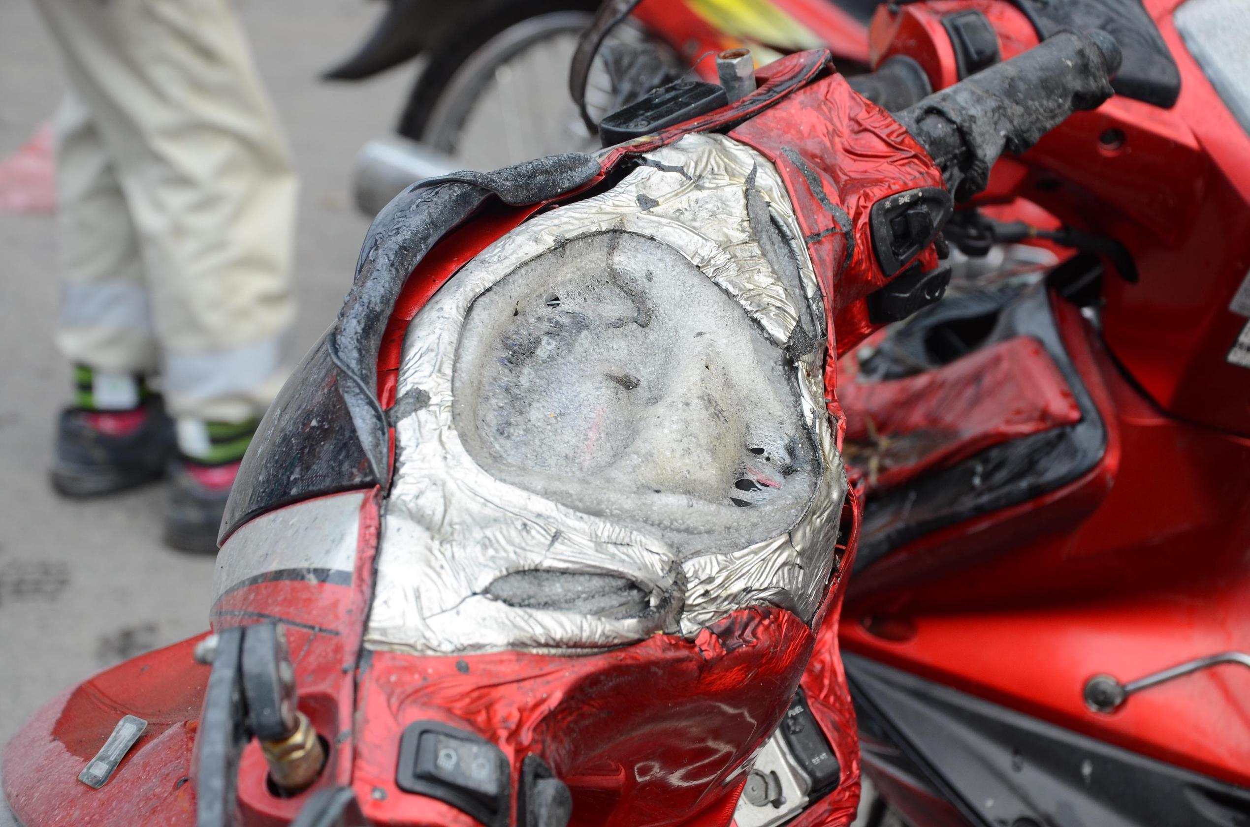 Nhiều xe máy của kỹ sư và công nhân xây dựng bị lửa bén cháy.