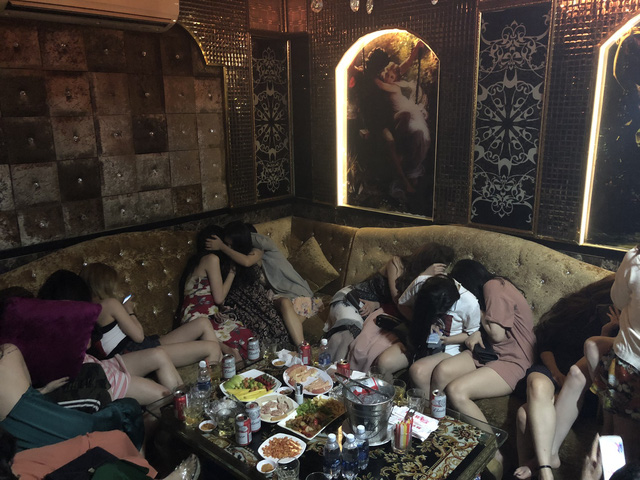 Các nữ tiếp viên nhốn nháo khi cảnh sát kiểm tra nhà hàng