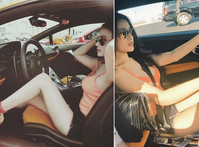 "Hot mom" Huyền Baby mặc áo hai dây cùng quần siêu ngắn khi tự mình lái xe dạo phố.
