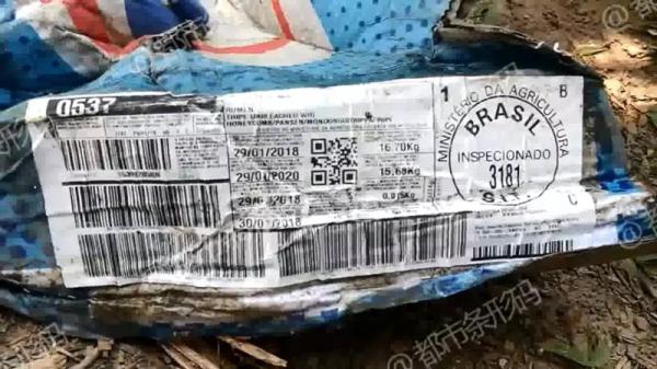 Cận cảnh tem nhãn của một gói thịt lậu bị cảnh sát Vân Nam thu giữ và đem đi tiêu hủy. Ảnh: YNTV2