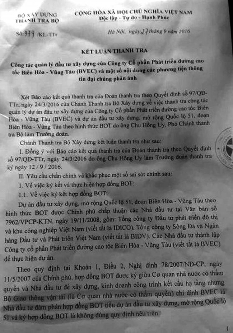 Kết luận của Thanh tra Bộ Xây dựng về những sai phạm của BVEC.