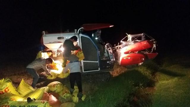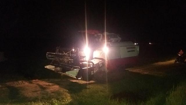 Những chiếc máy gặt có hệ thống đèn chiếu sáng tốt nên dễ dàng hoạt động trên đồng ruộng vào ban đêm.