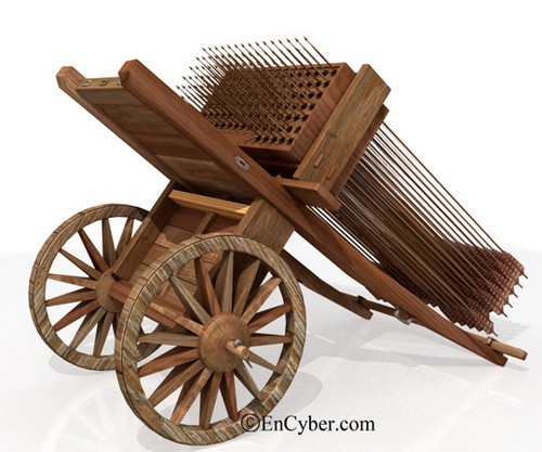 Hwacha là vũ khí có thể bắn được 200 mũi tên cùng lúc. Ảnh: EnCyber