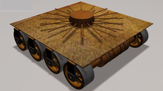 Tháp công thành được đặt trên 8 bánh xe nên có thể di chuyển linh hoạt. Ảnh: Internet