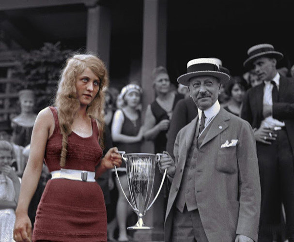 Cô Eva Fridell nhận cúp giành cho người chiến thắng tại cuộc thi sắc đẹp Washington Tidal Basin vào ngày 5/8/1922. Ảnh: My Colorful Past.
