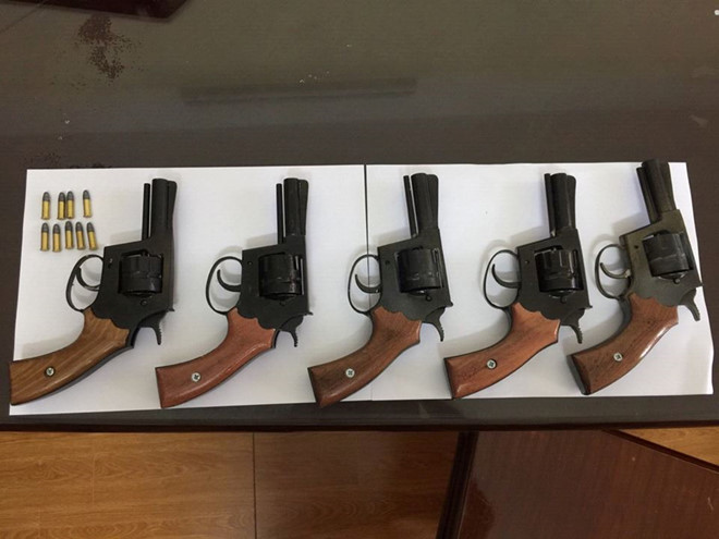 Kết quả giám định hình sự cho thấy, 5 khẩu súng thu giữ được là súng ngắn kiểu ổ quay, bắn đạn cỡ 5,6 mm, có tính năng tương tự như vũ khí quân dụng; 9 viên đạn thể thao cỡ 5,6 x 15,5 mm, không phải đạn quân dụng.