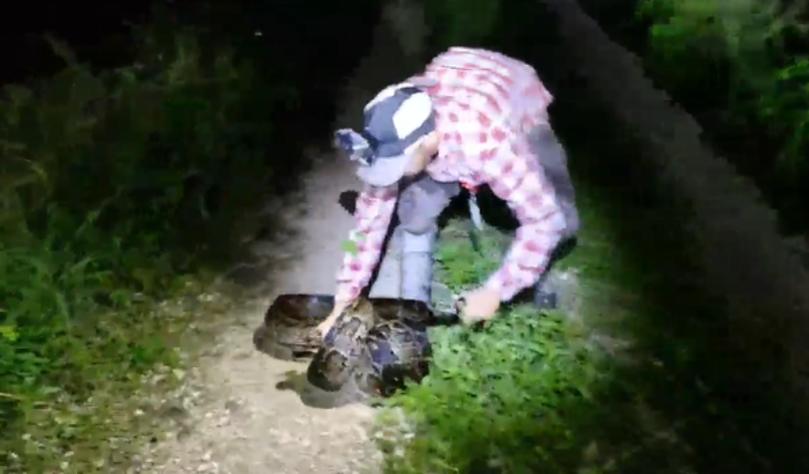 Trong đoạn video đăng tải trên Facebook, Kimmel lôi con trăn đang siết chặt một con cá sấu khỏi bụi rậm và ép nó phải nhả con mồi xuống bãi cỏ. Ngay sau đó, con cá sấu nhỏ nhanh chóng chạy xuống đầm lầy.