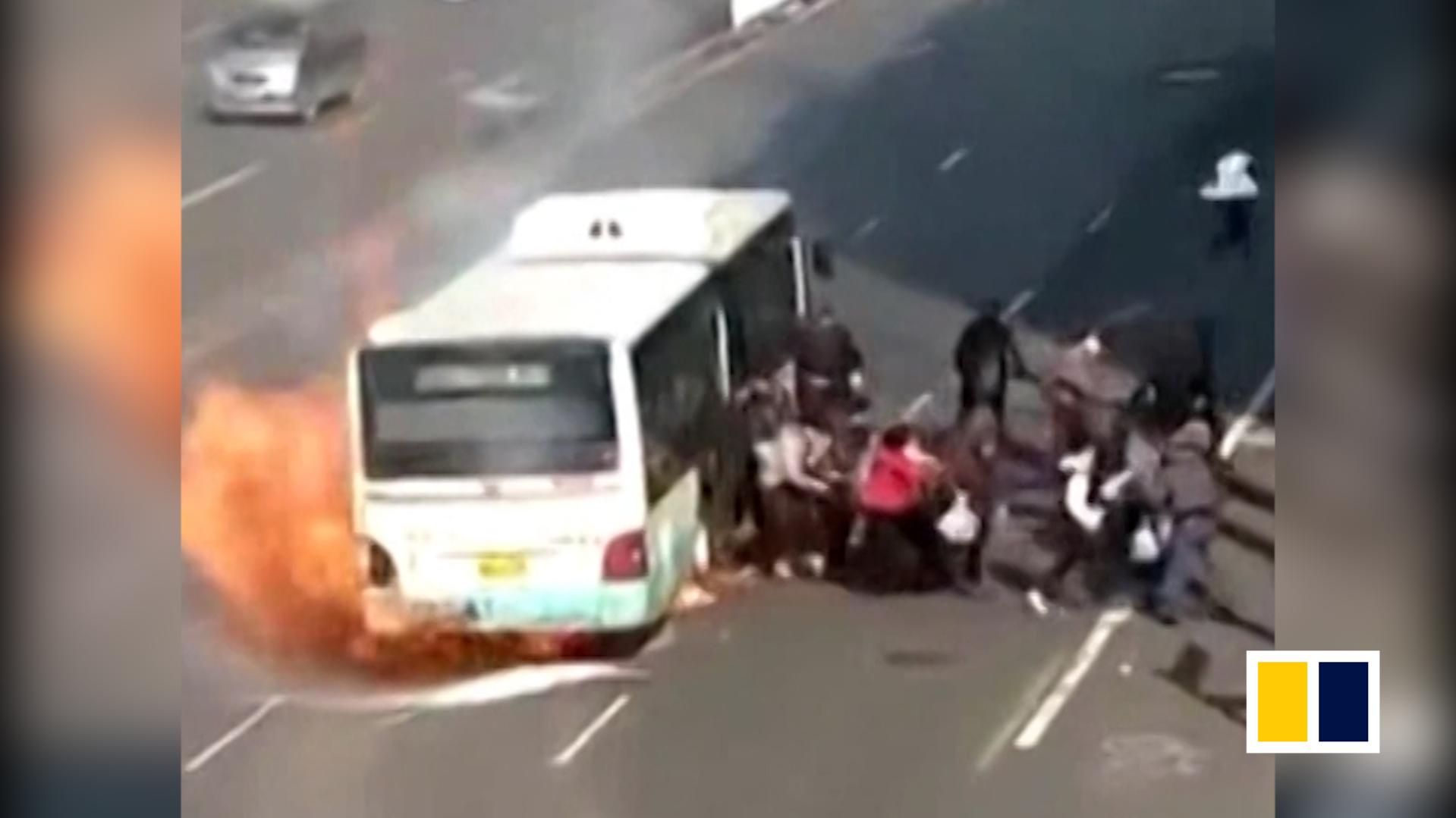 Old  Default Phát hoảng cảnh xe bus phát nổ giữa đường (+video)