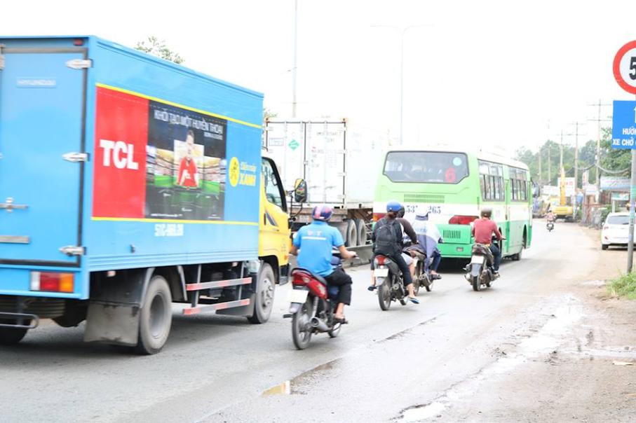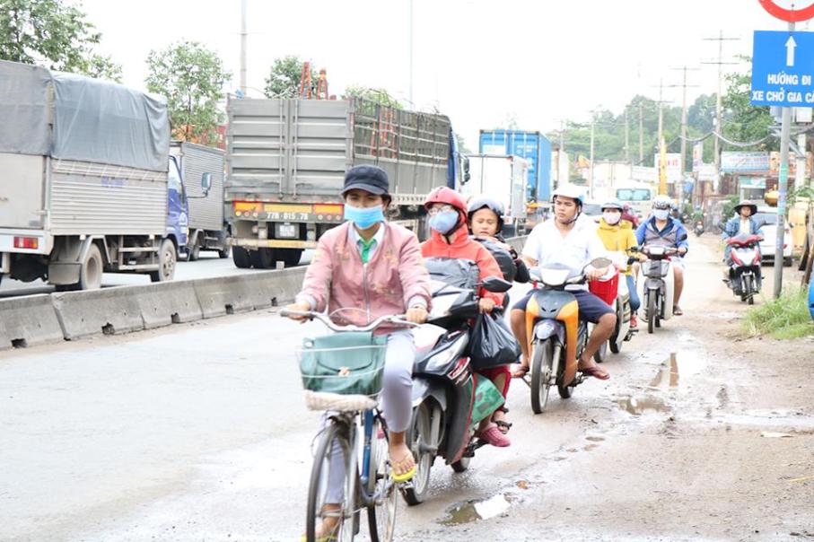 Chỉ cần vấp hay ngã ra đường thì hậu qủa sẽ rất khó lường, bởi xe tải, xe container chạy sát rạt