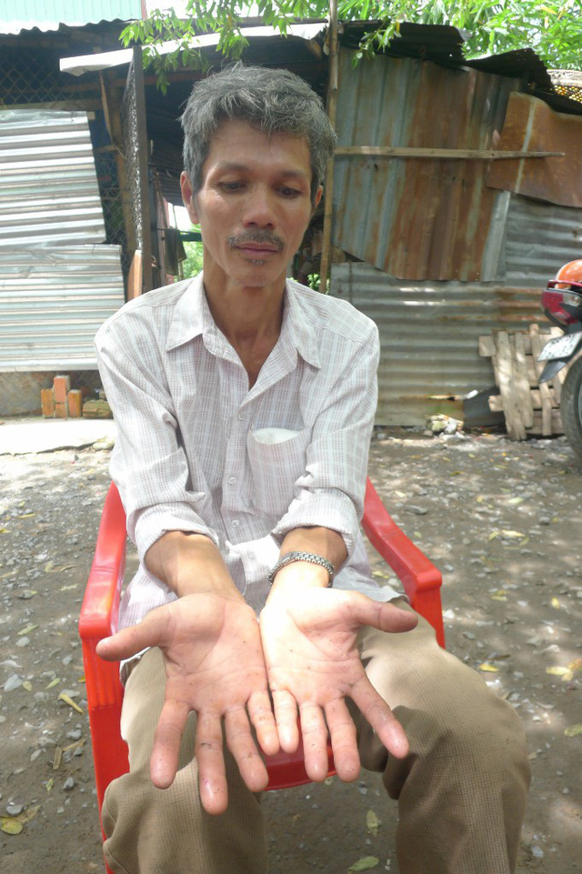 Bàn tay và chân của thầy giáo Lân bị xây xát nhiều chỗ