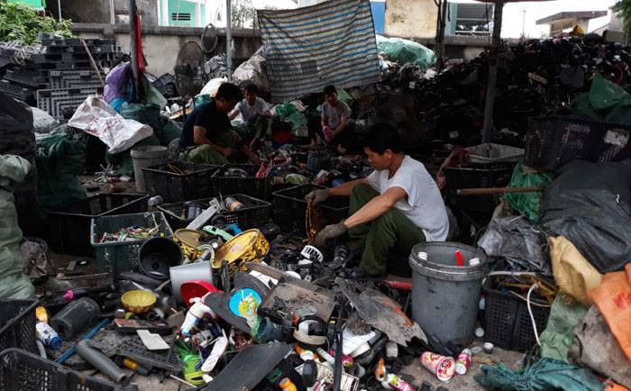 Làng Quan Độ (huyện Yên Phong, tỉnh Bắc Ninh) ban đầu chỉ gồm một vài hộ thu mua máy móc thanh lý về mổ, xẻ, phân loại để cung cấp nguyên liệu cho các làng nghề tái chế nhôm, đồng… Nhưng đến nay, toàn thôn Quan Độ có khoảng hơn 100 hộ làm đầu mối thu mua phế liệu và khoảng 30-40 doanh nghiệp hoạt động trong nghề mổ xe. Ảnh: ****.