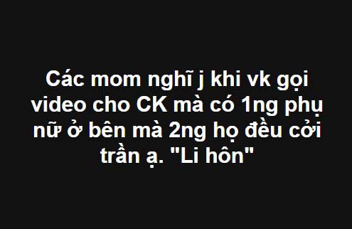 Chia sẻ trên mạng xã hội, chị L.T nói: “Các mom nghĩ gì khi vợ gọi video cho chồng mà có một người phụ nữ ở bên, cả 2 người họ đều cởi trần luôn”.