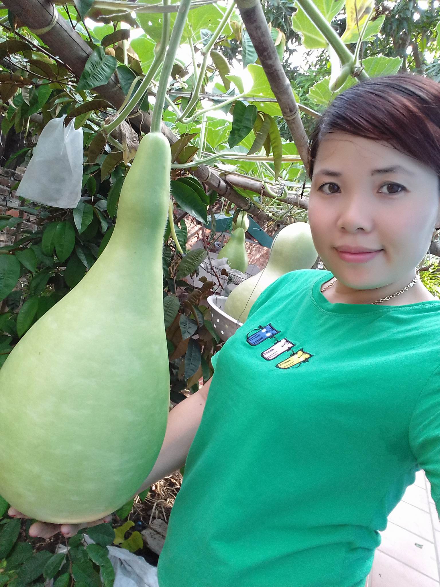 Trong một lần đi hội chợ nông sản vùng cao phía Bắc, chị đã được một người bạn tên Sùng Minh Thành tặng loại hạt giống "bầu tiên" hồ lô khủng này.