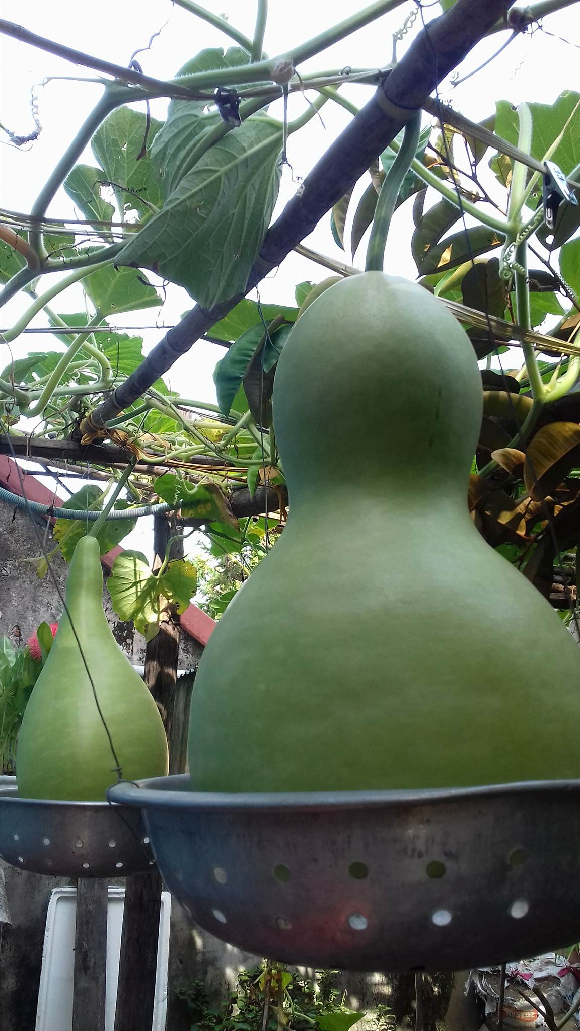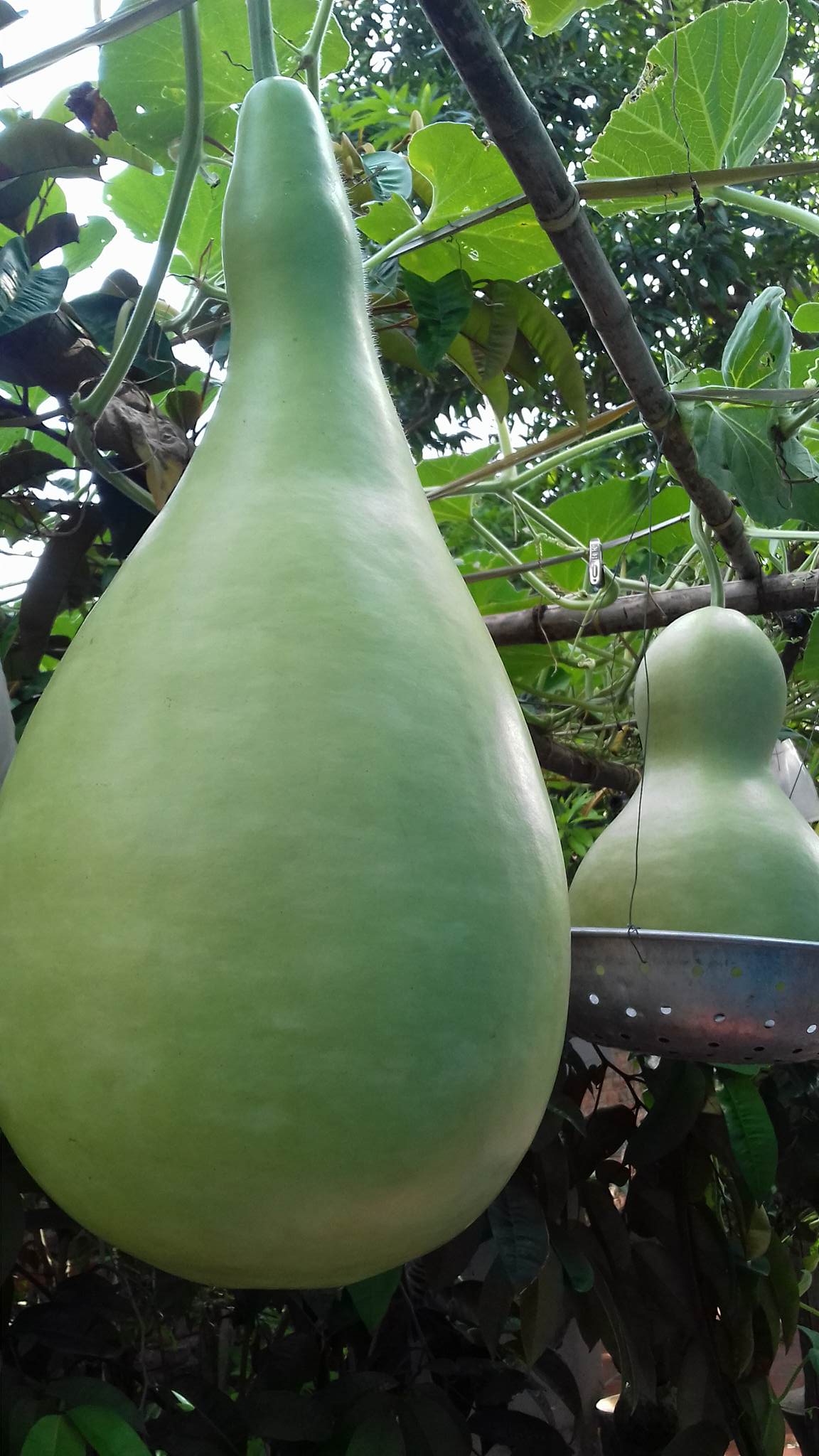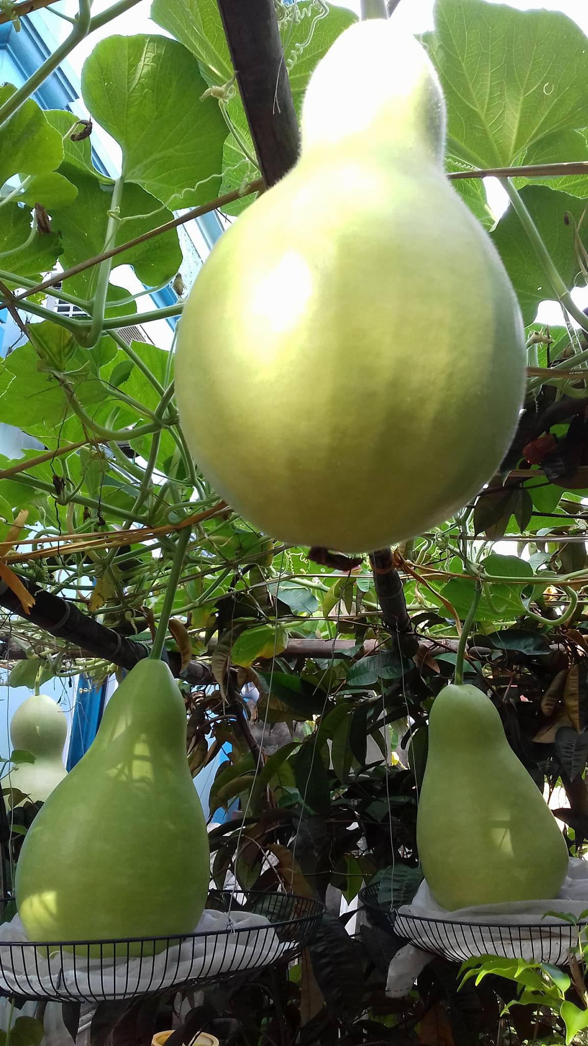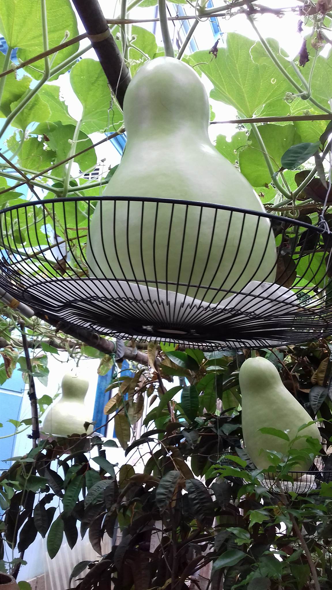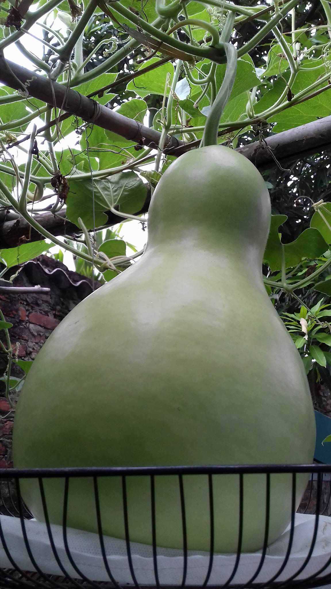 Đó là giàn bầu khiến ai cũng thấy thích mắt. Có quả nặng tới 10 ký. Một nông dân trẻ nói "Giống bầu này rất sai quả, quả rất to và khủng. Trung bình, mỗi quả khi thu hoạch đều cho từ 7-10kg. Vì bầu tiên hồ lô quá nặng nên nhiều khi mình phải dùng tất cả những gì trong nhà để làm "bà đỡ" cho bầu".