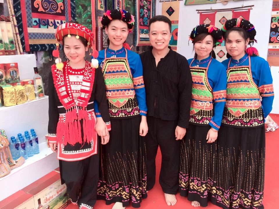 Anh Sùng Minh Thành (áo đen, đứng giữa) là người tặng hạt giống cho chị Huyền trong một lần đi hội chợ nông sản vùng cao phía Bắc.