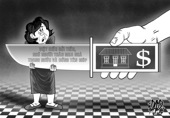 Theo luật sư Vũ Mạnh Quỳnh, trước khi Luật nhà ở năm 2014 ra đời, pháp luật VN không cho phép người VN định cư ở nước ngoài đứng tên sở hữu nhà. V́ vậy nhiều trường hợp chuyển tiền nhờ người thân mua rồi đứng tên hộ, dẫn đến khó khăn khi xảy ra tranh chấp.