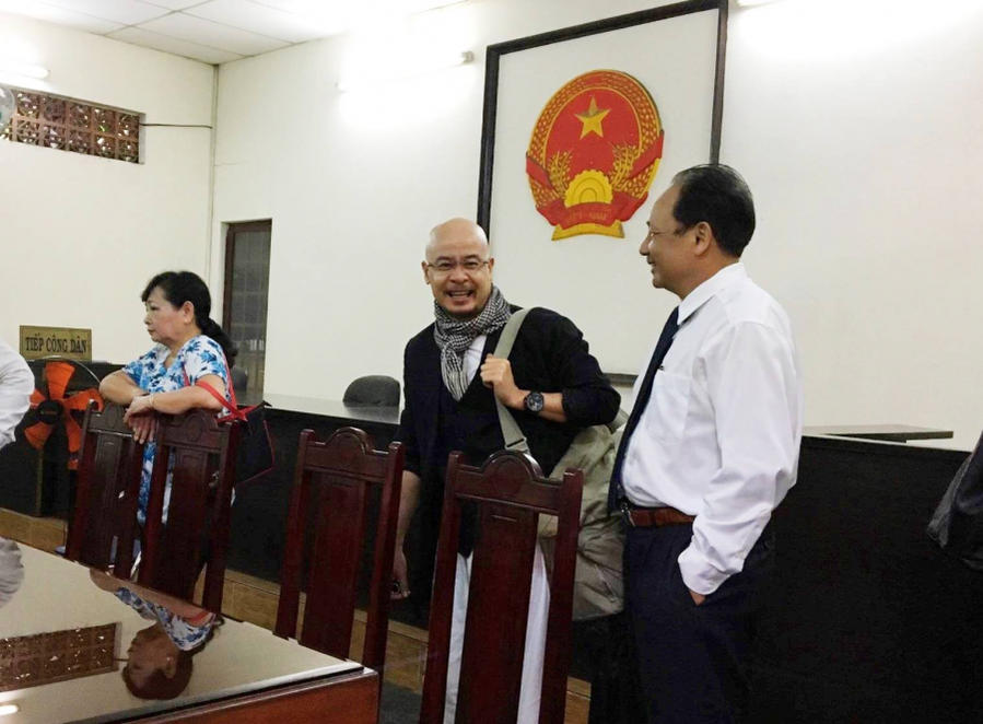Ông vẫn giữ nguyên trang phục như đã đến phiên xử lần trước với chiếc quần thụng màu trắng, giày trắng, áo vest đen. Chủ tịch Tập đoàn cà phê Trung Nguyên vẫn mang theo chiếc giỏ xách quen thuộc, cùng với chiếc khăn rằn quấn cổ.