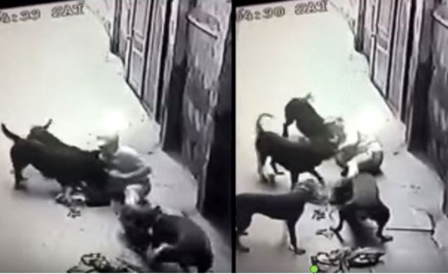 Anh D. bị chó cắn trong lúc dắt 4 con chó đi vào con ngõ nhỏ. Ban đầu, đàn chó có dấu hiệu lao vào trêu đùa chủ nhân, tuy nhiên sau đó 4 con chó xông vào cắn xé, quật ngã anh D. xuống đường.
