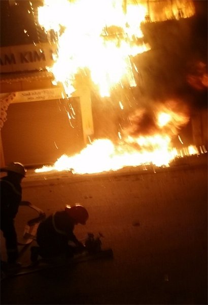 Náo loạn trong đêm cả một phố. Sau tiếng nổ lớn là ngôi nhà 3 tầng bốc cháy. Sau đó 2 ngôi nhà bên cạnh cũng cùng số phận.
