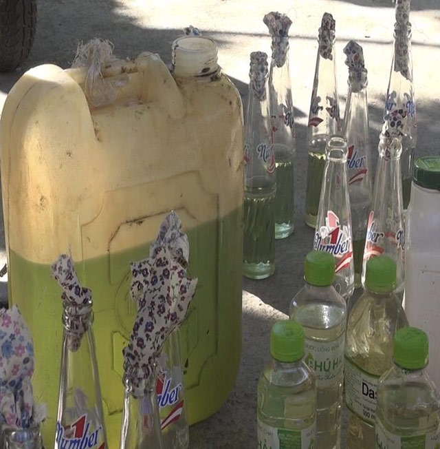 Bom xăng chuẩn bị để tấn công lực lượng công an (ảnh CA Quảng Ngăi cung cấp)