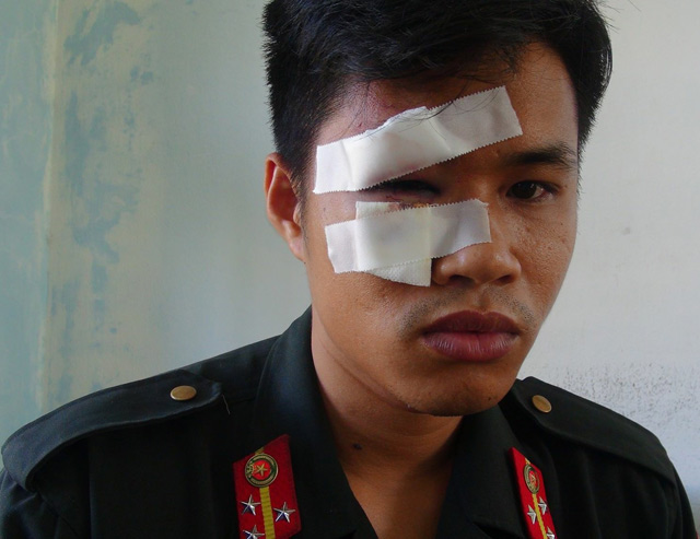 Một chiến sỹ CA bị thương trong khi làm nhiệm vụ (ảnh do CA Quảng Ngăi cung cấp)