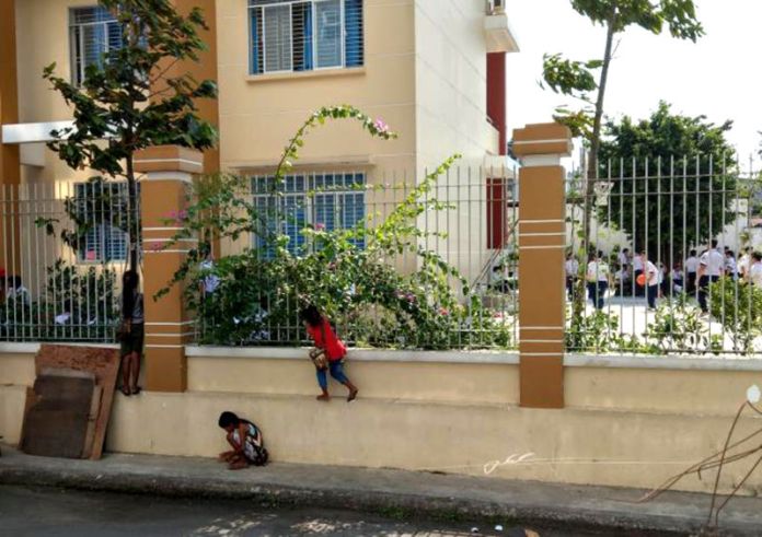 Còn tại Tân Phú, Sài Gòn, trên Facebook của Jen Tran đăng tấm ảnh có người vô tình chụp được cảnh ba bé gái bán vé số khoảng 6-7 tuổi leo lên hàng rào một trường học để ngắm nhìn cảnh các học sinh đang rộn rã tựu trường.
