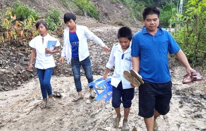 Tại Huyện Quan Hóa, tỉnh Thanh Hóa, là nơi chịu thiệt hại nặng của đợt mưa lũ vừa qua. Nhiều nơi phải khai giảng trong tình trạng thiếu lớp học, do đã bị mưa lũ cuốn trôi. Để đến được trường, nhiều thầy cô và học sinh của huyện Quan Hóa phải chống gậy, lội bùn.