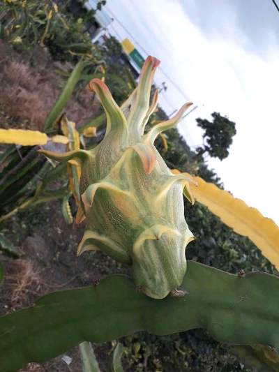 Nhánh thanh long có màu vàng của anh Phan Châu Phong xin từ vườn nhà ông Năm Biết.