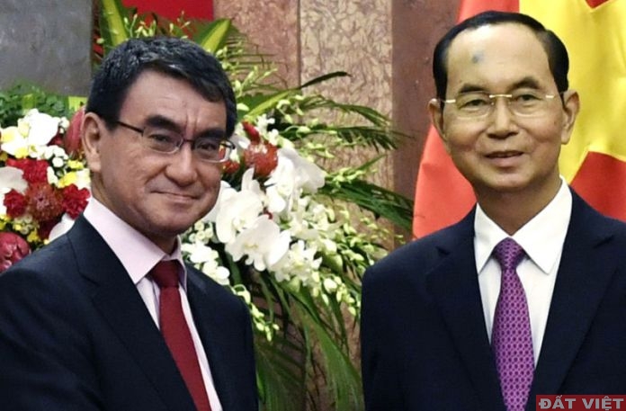 Ông Trần Đại Quang (phải) và Ngoại Trưởng Nhật Taro Kono tại Hà Nội hôm 12 Tháng Chín, 2018. (Hình: Nhạc Nguyễn/AFP/Getty Images)