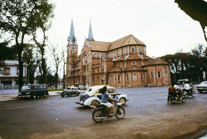 Nhà thờ Đức Bà ở Sài Gòn năm 1967. (Ảnh: Aaron Tock cung cấp)