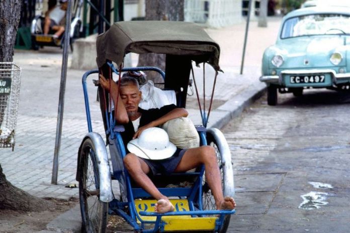Một cụ ông đạp xích lô. (Ảnh: Aaron Tock cung cấp)