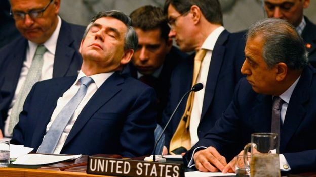 Cựu Thủ tướng Anh Gordon Brown cũng 'chợp mắt' khi tham dự một cuộc họp của hội đồng bảo an tại LHQ vào tháng Tư, 2008.