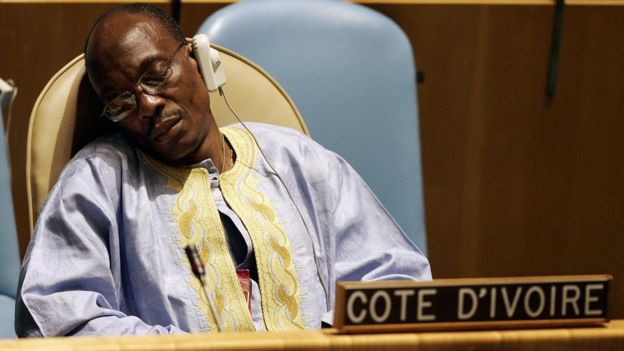 Một đại biểu của Bờ Biển Ngà cũng ngủ tại Đại hội đồng LHQ thứ 60 vào 2005.