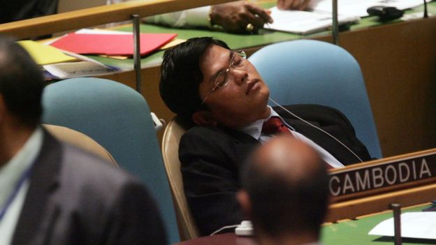 Một đại diện của Campuchia ngủ giữa các vòng bầu cử cho Hội đồng Bảo an tại Trụ sở LHQ hồi tháng 10, 2006.