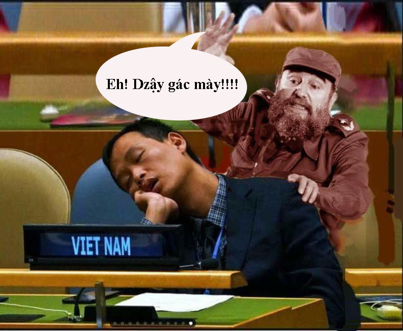 Có người bảo ngủ trong lúc nghỉ giải lao. Vậy tại sao ko tranh thủ thời gian trống đi chuyện trò với bạn bè quốc tế để giới thiệu về VN, để vận động cho việc bầu Vn thành thành viên ko thường trực của Hội đồng bảo an, việc mà đoàn VN đang làm?