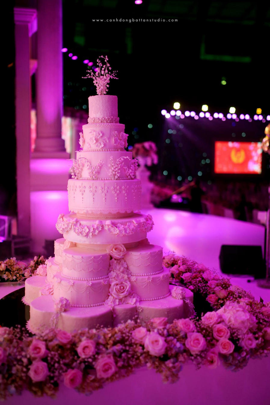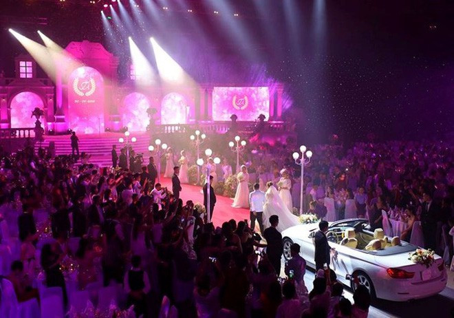 Hôn lễ có quy mô tổ chức còn lớn hơn một đại nhạc hội. Thực đơn các món ăn đều theo tiêu chuẩn 5 sao. Bánh cưới 10 tầng, có 3 người khiêng. Không gian tiệc được phủ bằng rừng hoa tươi, pha lê và nến thơm.