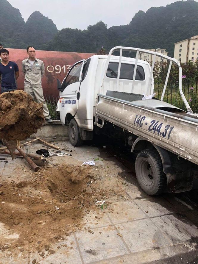 Sau va chạm, xe ô tô đầu kéo bị lật sang bên phải, xuống vỉa hè va chạm với xe tải 14c-24431 đang đỗ bên đường (hướng HL-CP). Ở gần xe tải có 1 người dân và 2 công nhân đang trồng cây (đi xe tải 14c -24431). Vụ tai nạn khiến 1 người chết tại chỗ, 2 người bị thương nặng. Rất may, tất cả hành khách trên xe khách an toàn.
