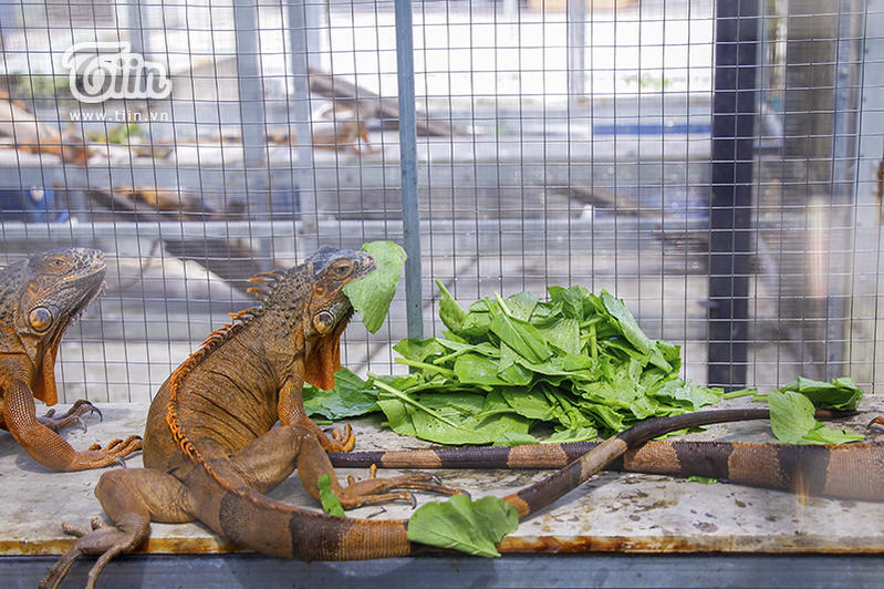 Ngoài rau muống, rau cải, những chú rồng Nam Mỹ còn được cho ăn thêm các hạt bổ sung.