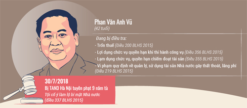 15 cựu quan chức vướng lao lý do liên quan vụ án Phan Văn Anh Vũ. Đồ họa: Tạ Lư - Bá Đô