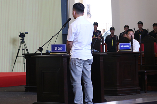 Nói ấp úng, lúc ngẩng lúc cúi trước bục khai báo, Huy lí nhí khai lên mạng tìm hóa đơn chuyển tiền của một ngân hàng quốc tế rồi chỉnh sửa tên chủ tài khoản, số tiền rồi gửi đi để chị Phương tin rằng anh ta đã chuyển tiền thật.
