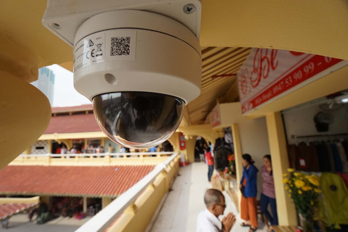 Chợ Bình Tây mới đã trang bị thêm hệ thống camera an ninh mới, bà con tiểu thương cũng như khách hàng cảm thấy an tâm hơn khi mua bán