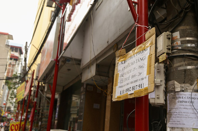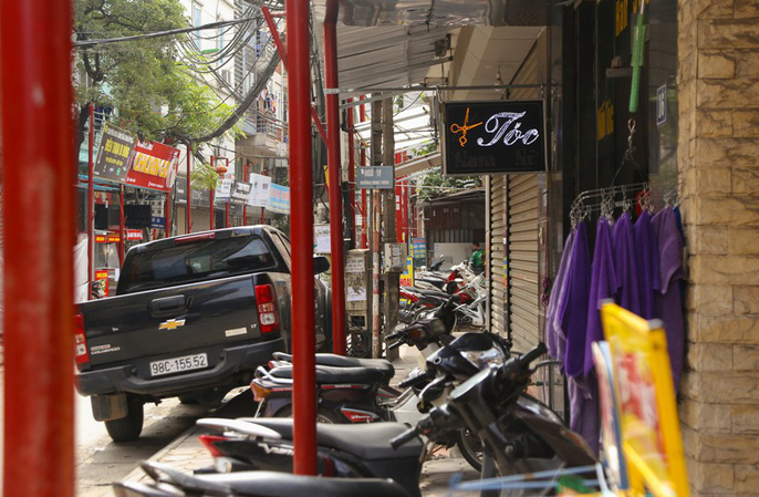 Nhiều cọc chưa được người dân gắn biển, chỉ đứng trơ trên vỉa hè. Trên nhiều đoạn phố, biển hiệu không thẳng hàng mà thò ra thụt vào.