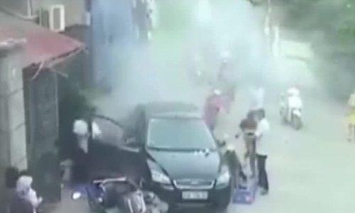 Bàng hoàng nh́n ô tô đâm vào quán ăn lề đường, một người bị cuốn vào gầm xe (+video)