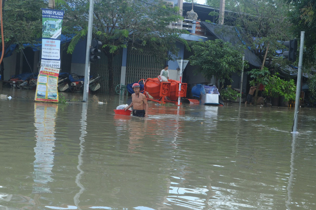 Sau một ngày nỗ lực cứu hộ, đến khoảng 23h đêm cùng ngày anh Được lội nước lũ về nhà. Thời điểm anh về nhà nước lũ ngoài đường ngập đến ngực.
