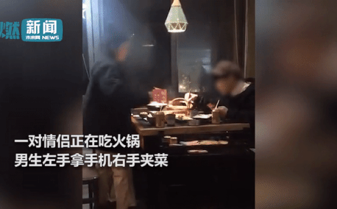 Cô gái làm điều này khi thấy bạn trai vừa ăn vừa dùng điện thoại
