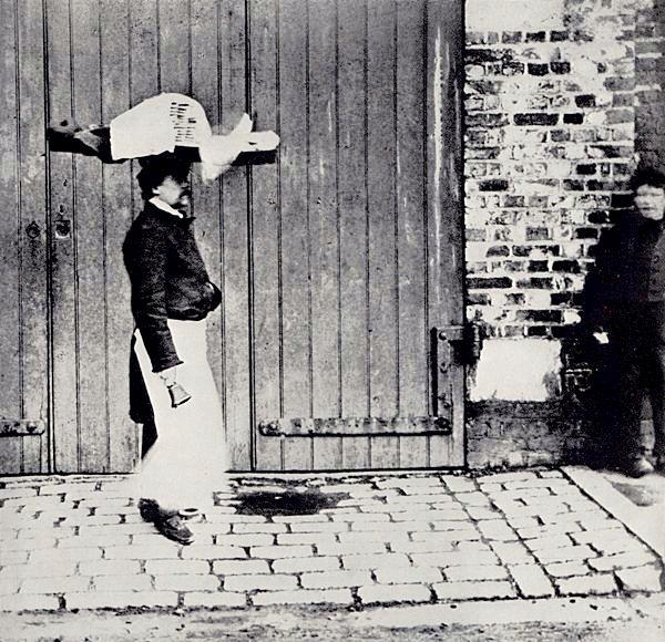Cách thợ làm bánh ở London rao bán bánh mì ở thế kỷ 19 vẫn hoàn toàn thủ công: họ đội các khay bánh lớn trên đầu, đi dọc các phố cùng với chuông cầm tay để báo hiệu cho người mua.