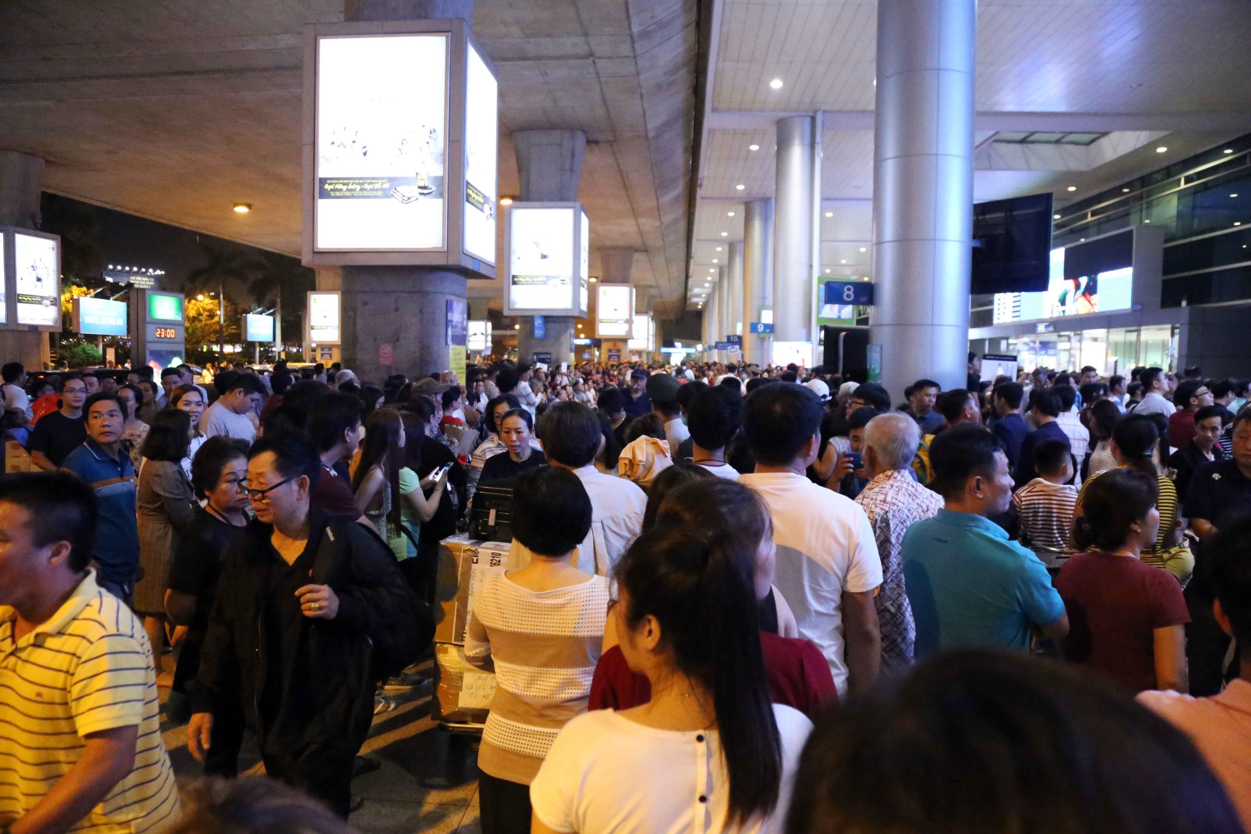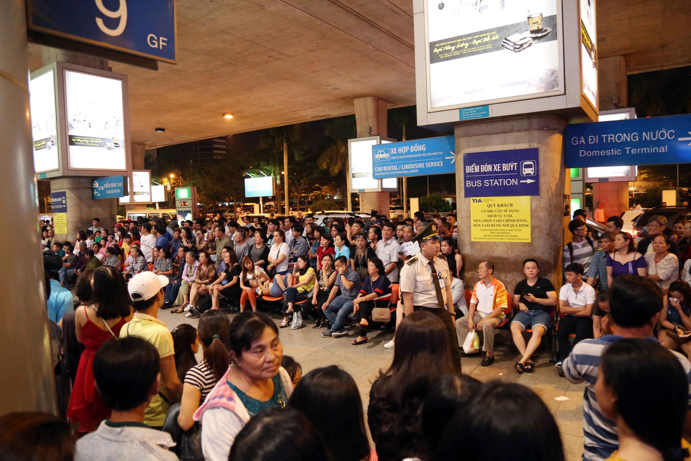 Càng về khuya 22/1, lượng người đổ về khu vực sảnh ga quốc tế để đón người thân càng đông.