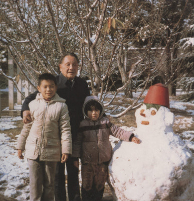 Đặng Tiểu Bình chụp ảnh cùng các cháu nhỏ bên người tuyết.
